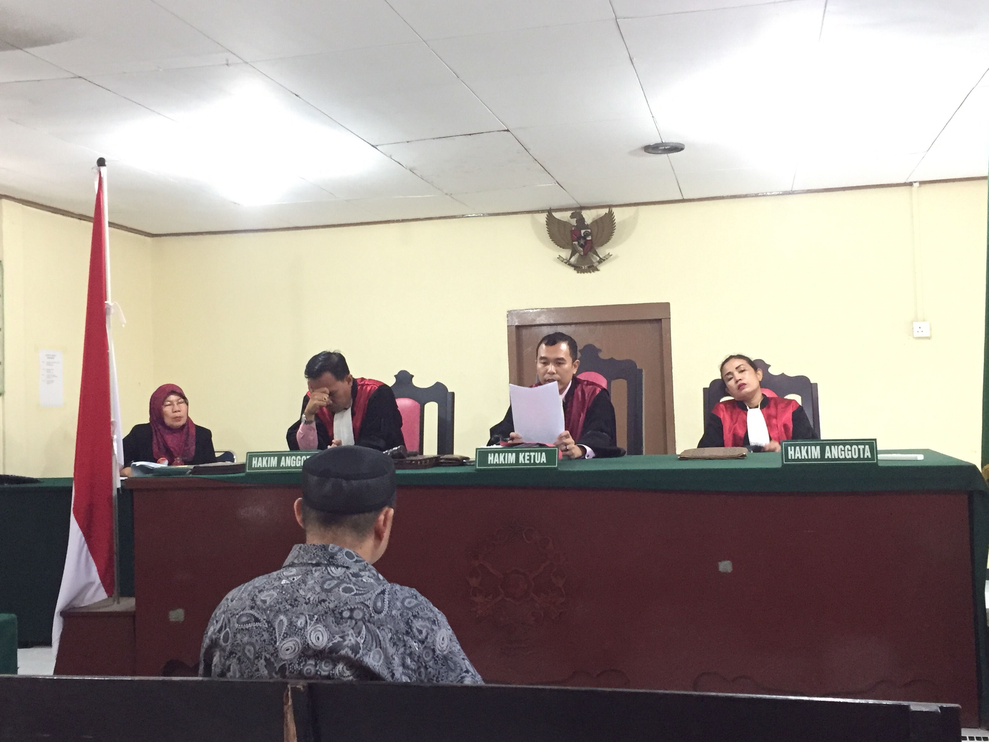 Untung diadili oleh Ketua Majelis Hakim Santonius didampingi anggota majelis hakim, Monalisa Siagian dan Aceh Sopian di Ruang Sidang PN Tipikor Tanjungpinang, Selasa (22/5/2019).
