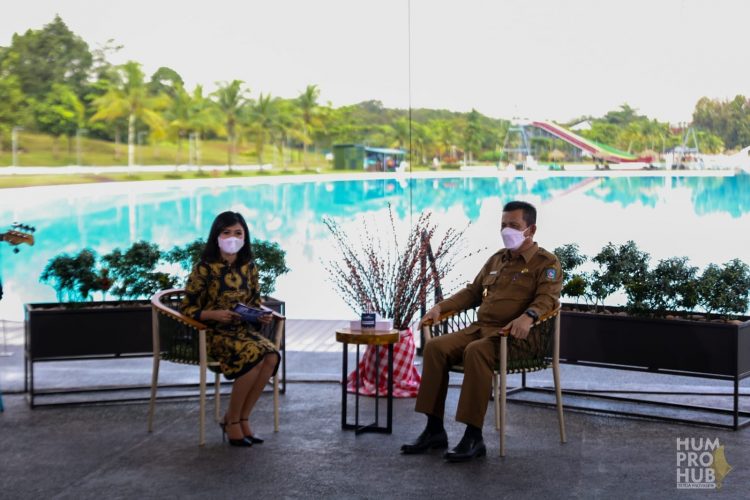 TANJUNGPINANG | WARTA RAKYAT –Gubernur Kepri H. Ansar Ahmad berdialog tentang Pembangunan Kawasan Perbatasan bersama presenter TVRI Silka Swarizona dalam acara ‘Indonesia Bicara’ dari Natra Lagoi, Bintan, Selasa (9/11/2021). Gubernur menekankan pentingnya kehadiran negara dalam kawasan perbatasan untuk menjamin kedaulatan negara Indonesia.