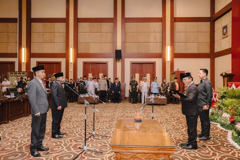 Selanjutnya dilaksanakannya Pengambilan Sumpah dan penandatanganan oleh Muhaimin Ahmad, S.T, H. Mustamin Bakri, S.Sos serta Ketua DPRD Provinsi Kepulauan Riau Jumaga Nadeak, SH.