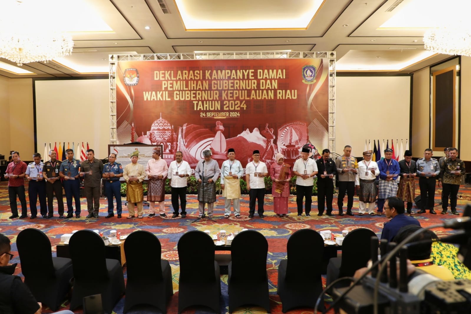 Pembacaan Naskah Deklarasi Kampanye Pilkada Damai yang dipimpin oleh Ketua KPU Provinsi Kepulauan Riau Indrawan Susilo Prabowoadi diikuti oleh Pasangan Calon Gubernur dan Wakil Gubernur dan Forum Komunikasi Pimpinan Daerah (FORKOPIMDA) Kepri.