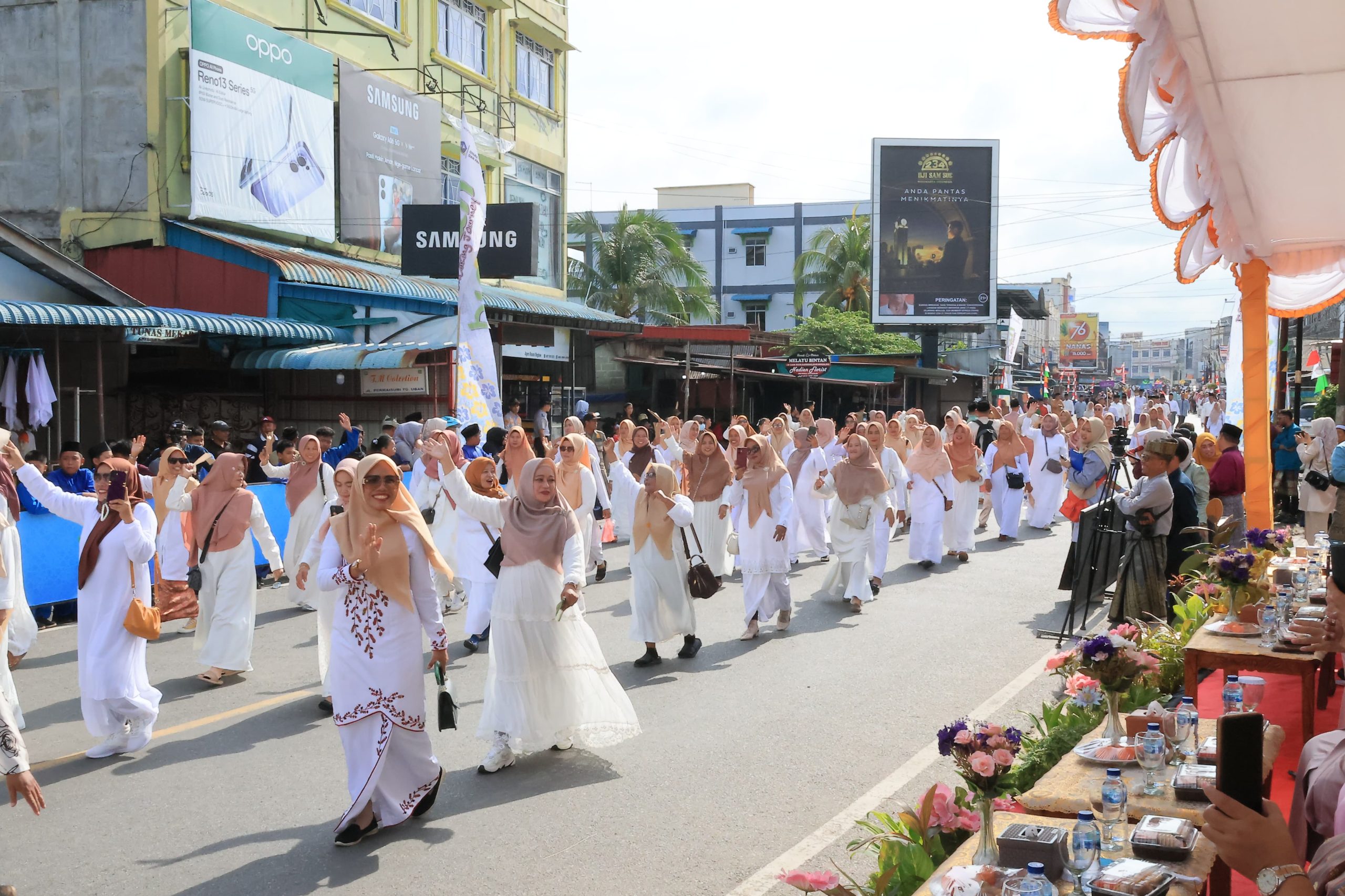 BINTAN | WARTA RAKYAT – Perhelatan akbar Musabaqah Tilawatil Qur’an dan Hadist (MTQH) Ke XIV tingkat Kabupaten Bintan Tahun 2025 telah dimulai. Diawali dengan rangkaian Pawai Ta’aruf, MTQH kali ini sangat meriah. Ribuan peserta dari sepuluh Kecamatan memadati sepanjang jalan di wilayah Tanjung Uban Kota, Kecamatan Bintan Utara, Senin (14/04) pagi.