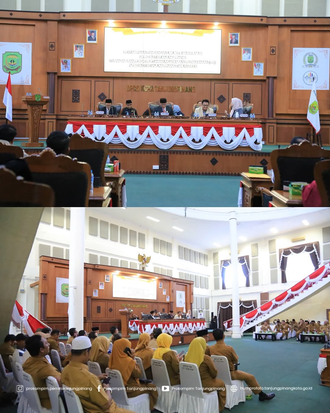 Rapat berlangsung di ruang sidang Paripurna DPRD Kota Tanjungpinang, yang dipimpin oleh Ketua DPRD, Agus Djurianto.