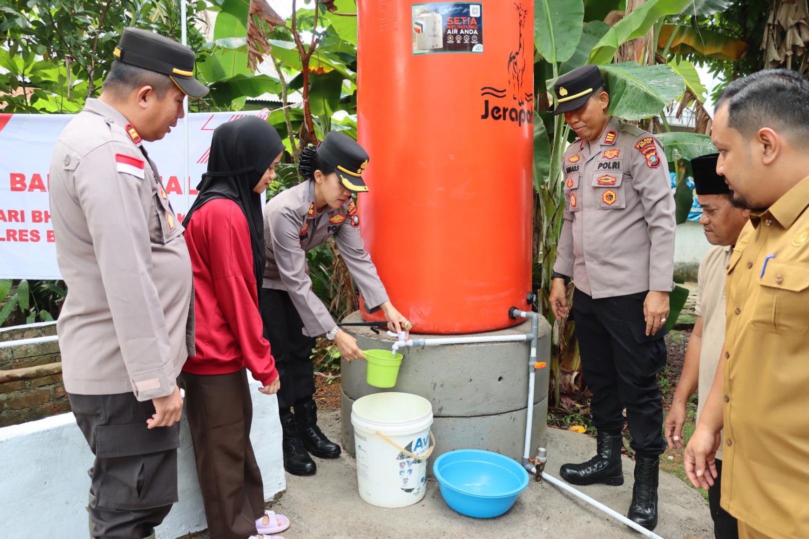 Bantuan ini diberikan guna membantu masyarakat yang mengalami kesulitan mendapatkan air bersih. Kapolres, didampingi Kabaglog, Kapolsek Teluk Bintan, dan personel kepolisian, menyerahkan sumur yang telah dilengkapi dengan mesin pompa air, tandon air, serta fasilitas lainnya untuk memudahkan akses warga terhadap sumber air bersih.