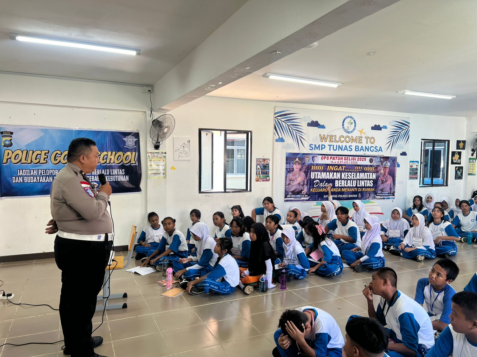BINTAN |WARTA RAKYAT – Dalam rangka mendukung pelaksanaan Operasi Patuh Seligi 2025 dan menekan angka kecelakaan lalu lintas di wilayah Kabupaten Bintan, Satuan Lalu Lintas (Satlantas) Polres Bintan menggelar kegiatan edukatif bertajuk ‘Go To School’ di SMP Tunas Bangsa Lagoi, Kecamatan Teluk Sebong, Rabu (16/7/2025).