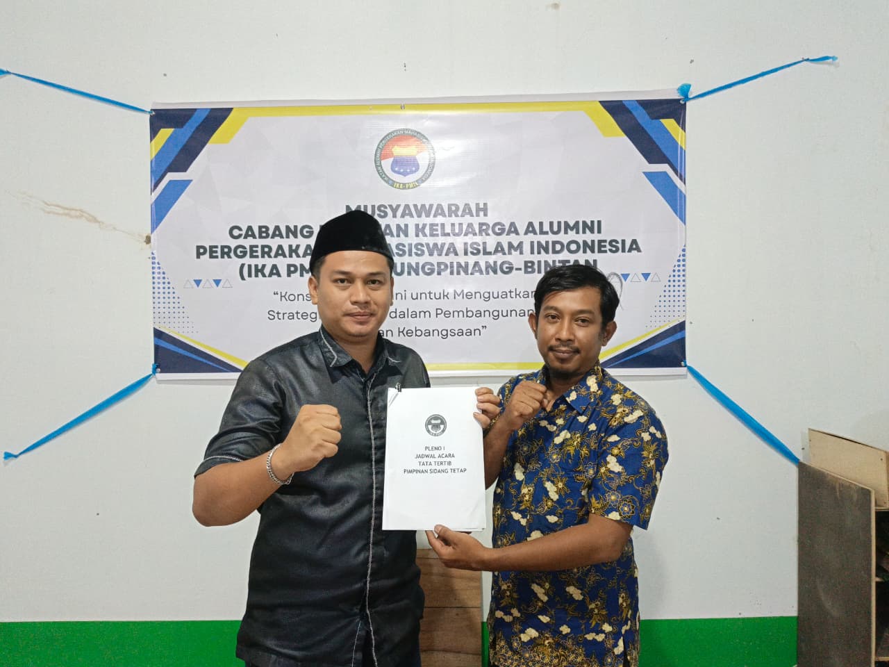BINTAN | WARTA RAKYAT – Ikatan Alumni Pergerakan Mahasiswa Islam Indonesia (IKA PMII) Cabang Tanjungpinang-Bintan sukses menggelar Musyawarah Cabang (Muscab) II secara khidmat di Sekretariat NU Kabupaten Bintan, Jalan Bintan Buyu. Dalam forum tersebut, Noverizki, S.P.W.K., seorang ahli perencanaan wilayah dan kota, terpilih secara aklamasi sebagai Ketua IKA PMII Tanjungpinang-Bintan periode 2025–2030.