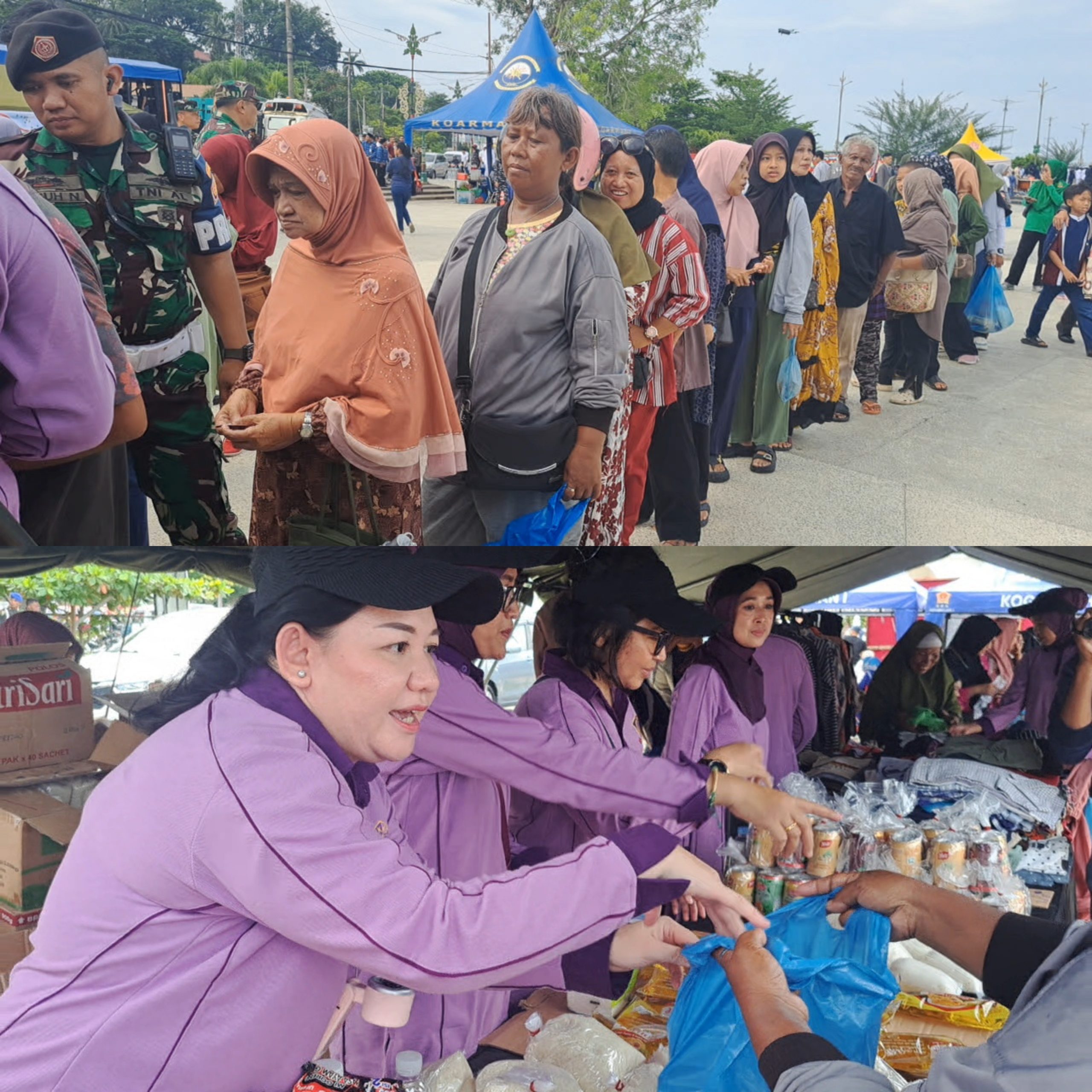 Sejak pagi, ratusan warga memadati Pelataran Tugu Sirih untuk mendapatkan kebutuhan pokok dengan harga terjangkau. Warung Amal IKKT PWA CBS II Kogabwilhan I menjadi stan paling diminati karena menawarkan barang-barang kebutuhan pokok seperti gula, minyak goreng, mi instan, dan pakaian bekas dengan sistem pembayaran seikhlasnya.