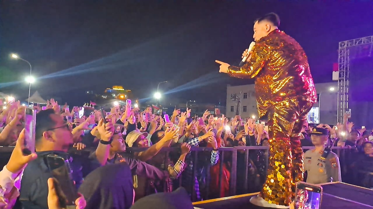 Artis yang dikenal lewat lagu “Seperti Mati Lampu” ini tampil memukau dan disambut sorak-sorai antusias dari masyarakat yang larut dalam suasana bahagia.