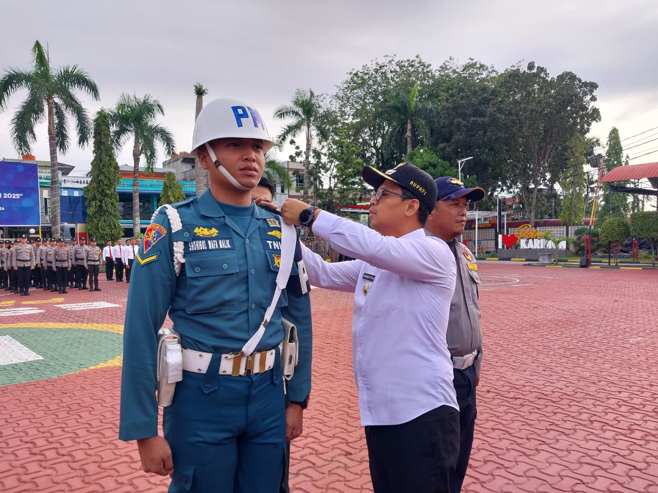 KARIMUN | WARTA RAKYAT – Bupati Karimun, Iskandarsyah memimpin apel gelar pasukan Operasi Lilin Seligi 2025 dalam rangka pelayanan Natal 2025 dan Tahun Baru 2026 (Nataru), Jumat (19/12/) sore.