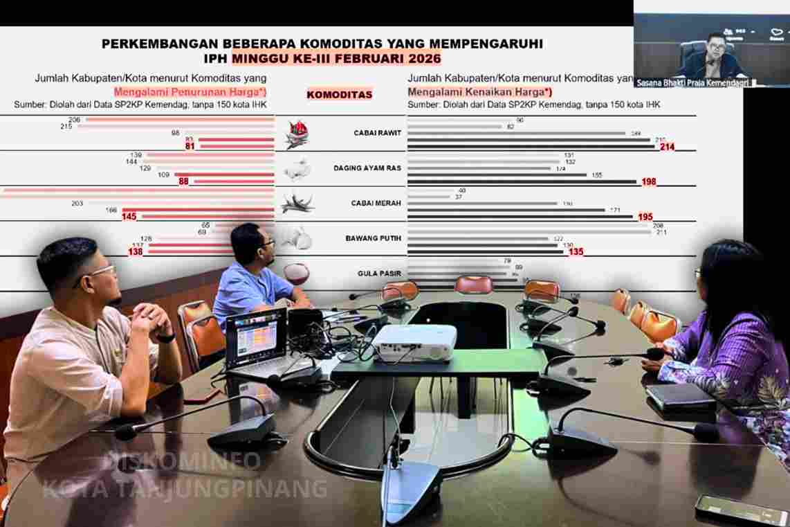 TANJUNGPINANG | WARTA RAKYAT – Pemerintah Kota Tanjungpinang melalui Sekretariat Daerah Bagian Perekonomian dan Sumber Daya Alam mengikuti Rapat Koordinasi Pembahasan Langkah Konkret Pengendalian Inflasi di Daerah Tahun 2026 yang diselenggarakan oleh Kementerian Dalam Negeri secara hybrid, Senin (23/2/2026).