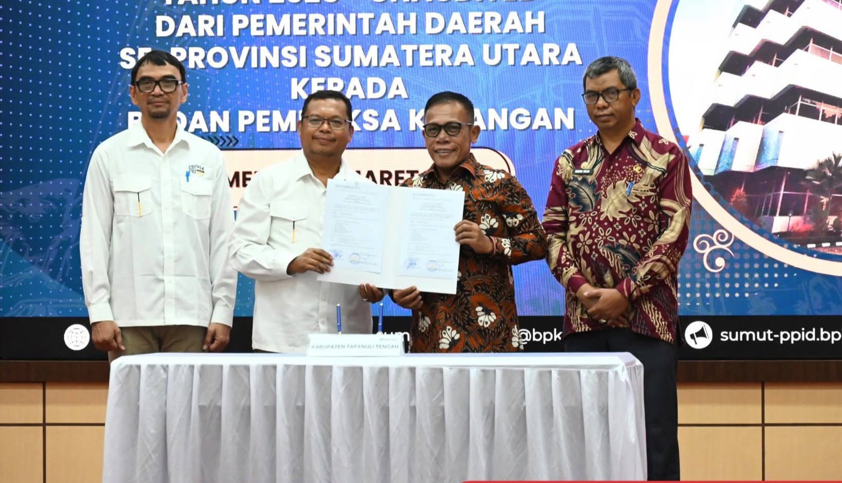 Turut hadir Bupati Labuhan Batu, Bupati Labuhan Batu Utara, Bupati Padang Lawas, Walikota Pematangsiantar, Wakil Bupati Langkat, Wakil Bupati Labuhan Batu Utara, Inspektur Tapteng, Plt. Kepala BPKPAD Tapteng, Para Pejabat BPK RI Perwakilan Sumatera Utara.