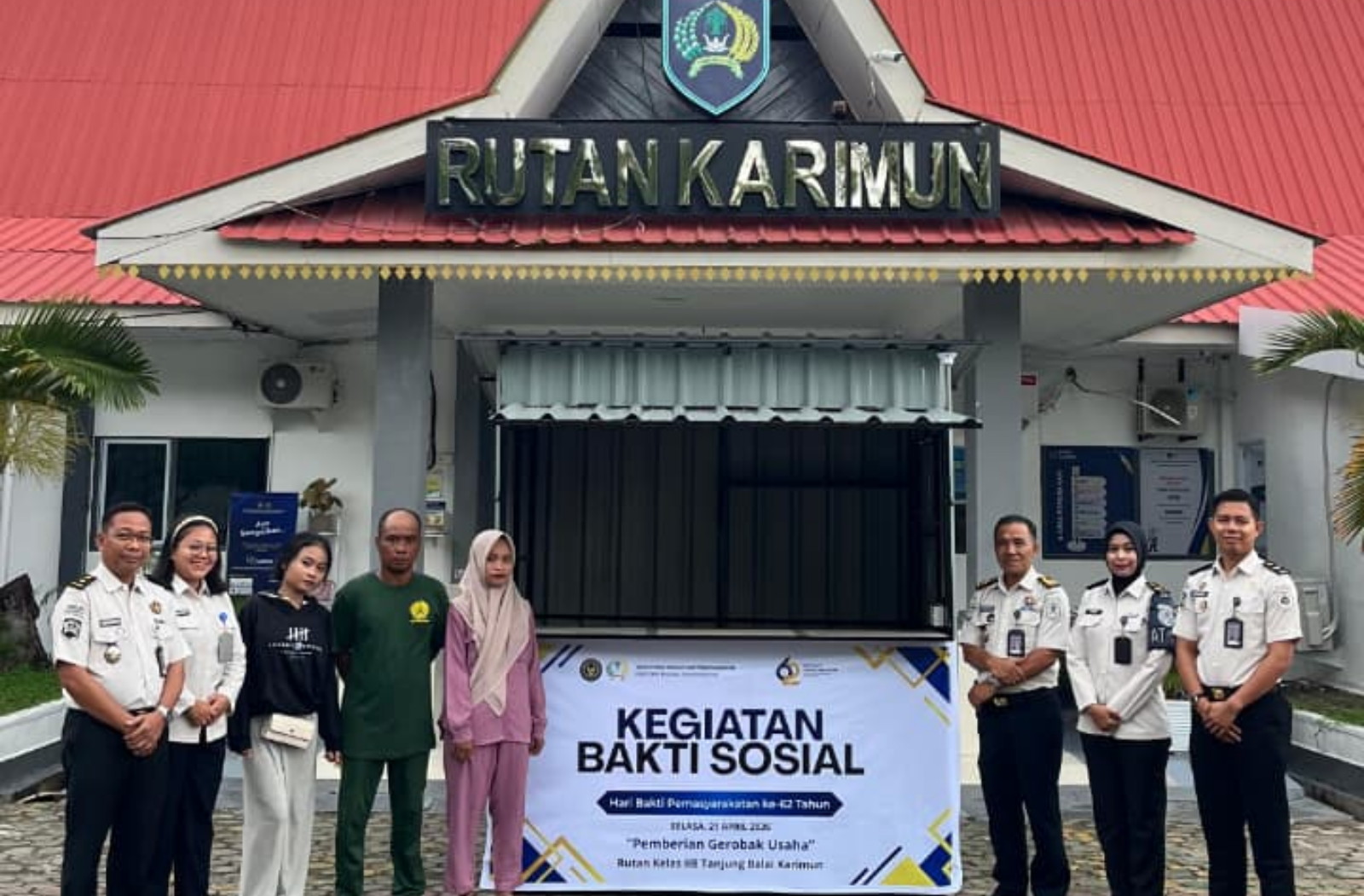 Dalam rangka memperingati Hari Bakti Pemasyarakatan (HBP) tahun 2026, Rutan Karimun menyerahkan bantuan berupa gerobak usaha kepada keluarga narapidana kurang mampu, Selasa (21/4).